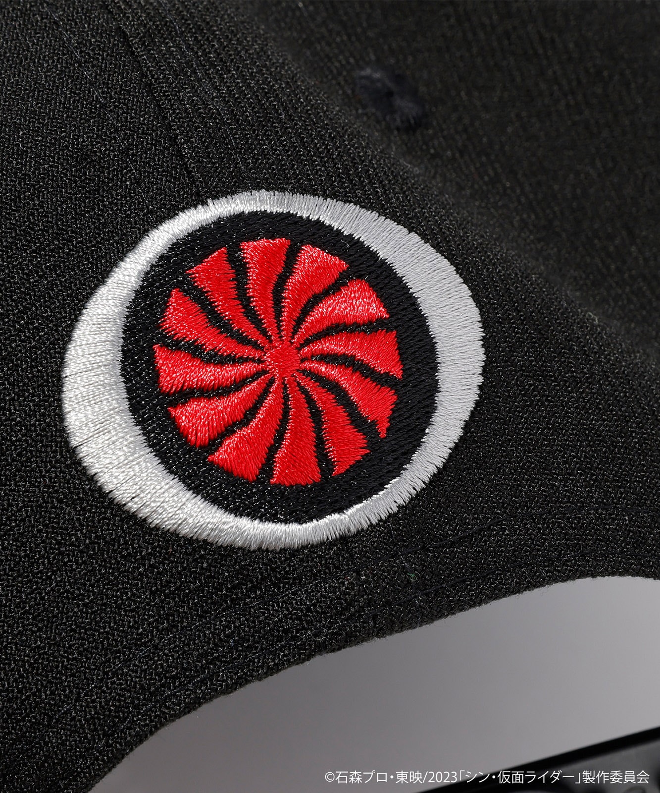 シン・仮面ライダーの頭文字となるSKRをフロントに3D刺繍し、バックにはライダーベルトを刺繍で入れた豪華な作りになっている。